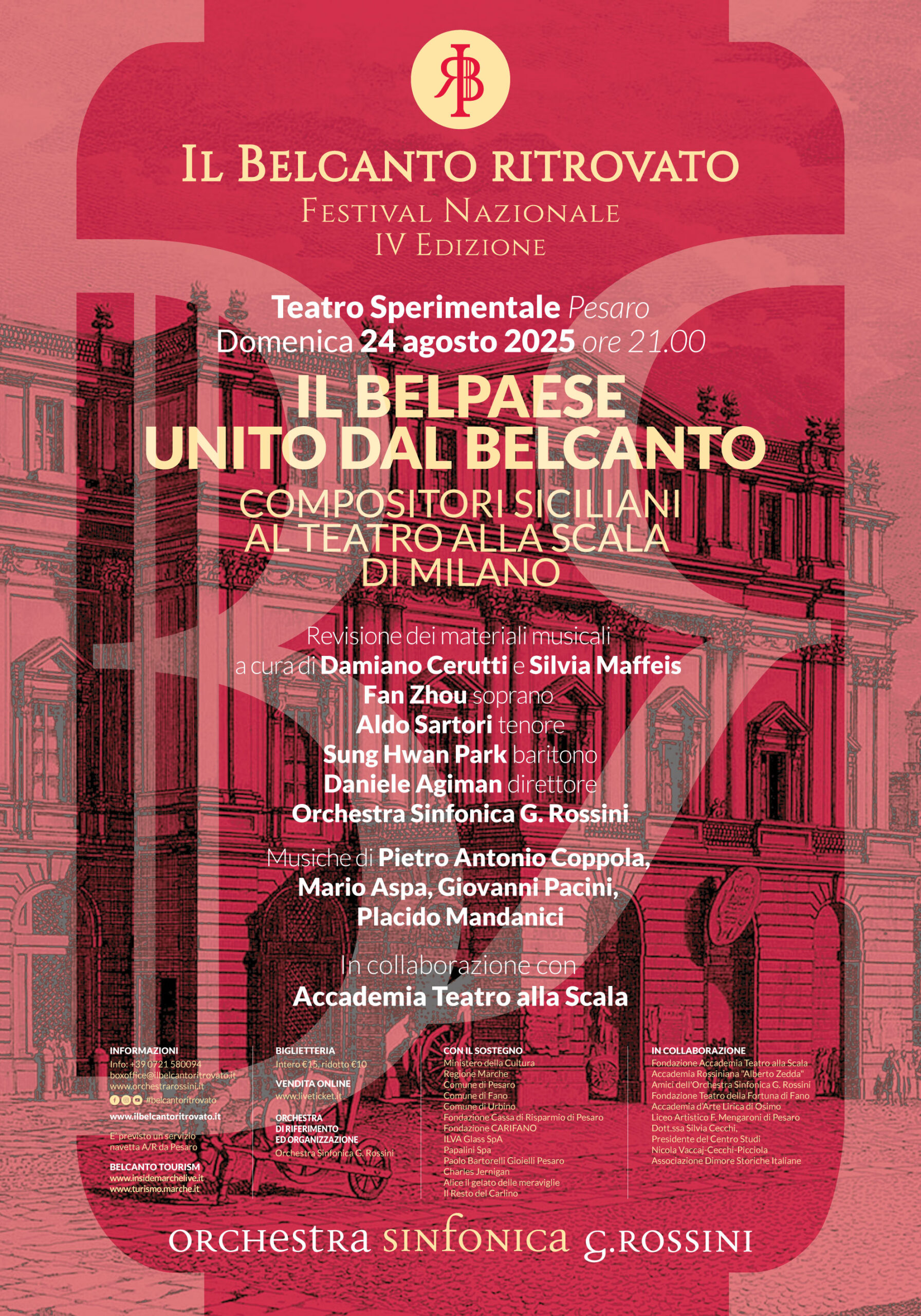 Il festival Il Belcanto ritrovato (IBR) ha deciso di continuare la fortunata riproposta di brani da opere che debuttarono al Teatro alla Scala nell’Ottocento, allora il massimo riferimento della lirica italiana nel mondo. Nell’edizione 2024, anno di Pesaro capitale della Cultura italiana, in cui i main composer di IBR sono stati due autori marchigiani come Lauro Rossi e Nicola Vaccaj, è stato realizzato il concerto I Marchigiani alla Scala in collaborazione con Accademia Teatro alla Scala di Milano….